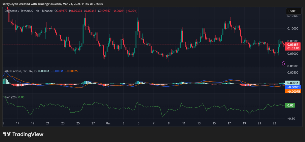 If Dogecoin fails to hold above the $0.09377 mark, the price might slip toward the support zone below $0.09330. Upon losing this key range, it could likely send the meme coin price deeper into bearish territory. On the flip side, a bullish recovery of the DOGE momentum could climb and attempt to reclaim the $0.09393 resistance range. ​Further pressure on the upside may trigger the asset’s price action to mount higher.