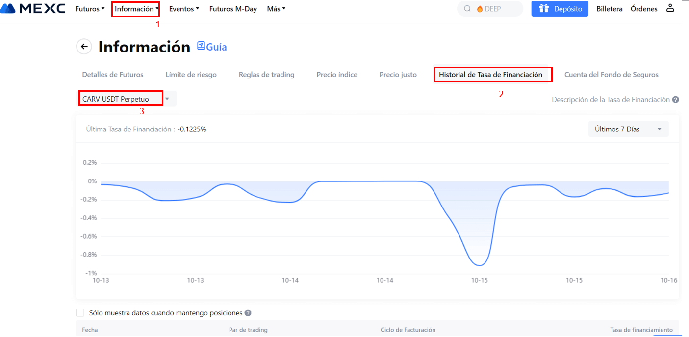 Para conocer los detalles más recientes sobre la tasa de financiación, consulte Información - Historial de tasas de financiación.