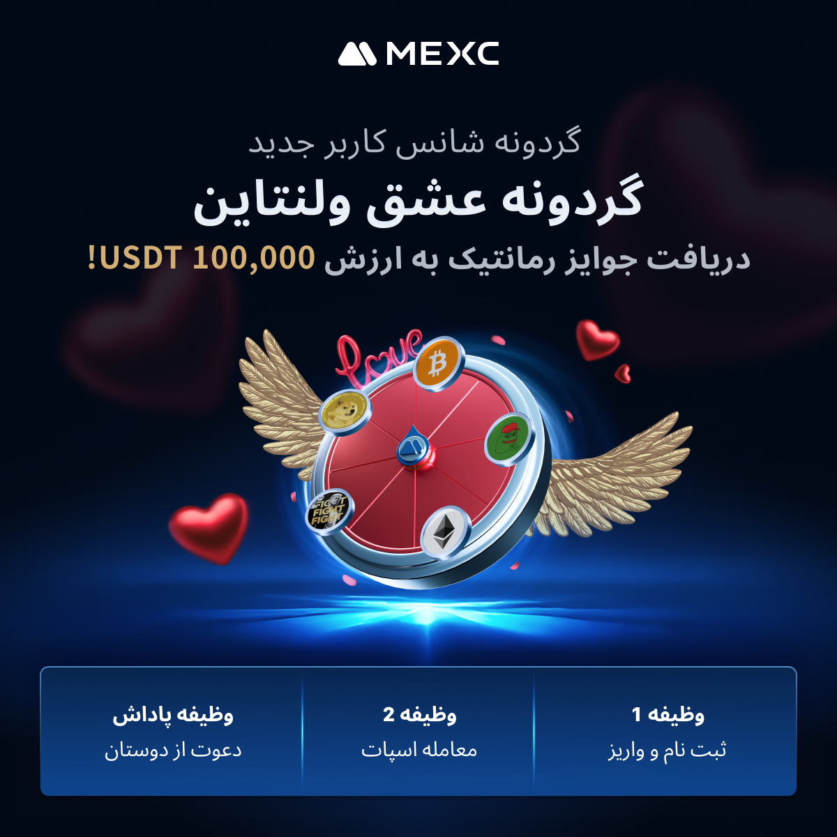 عشق در MEXC شکوفاست! این ولنتاین، گردونه را بچرخانید و با بسته های هدیه توکن به ارزش 100,000 USDT، عاشقانه پاداش بگیرید! 💕
