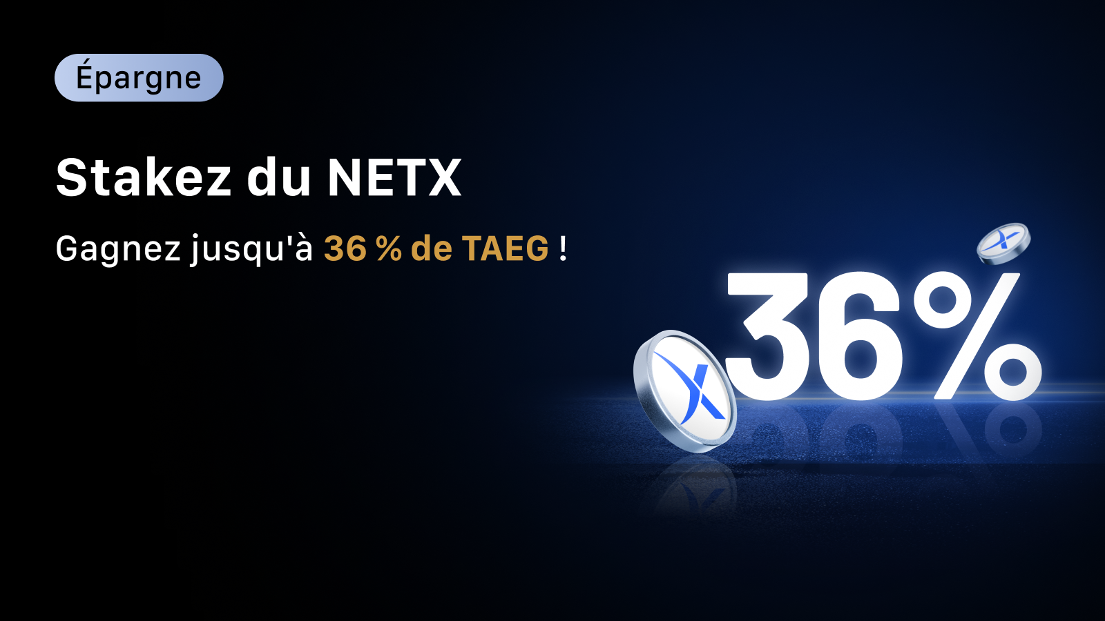 Pour tous les utilisateurs | 30 jours | 36 % | 100 NETX | 30 000 NETX |