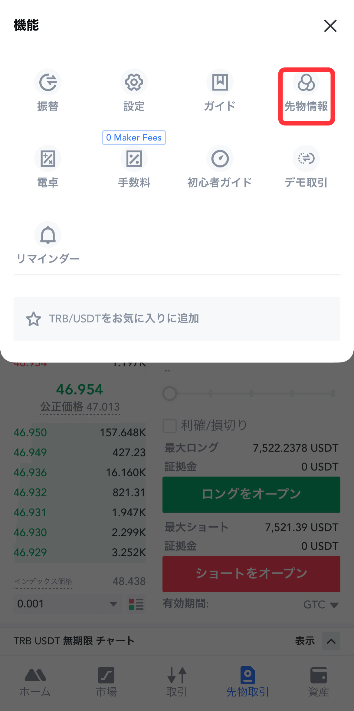アプリ: 先物取引 >> ··· >> 先物情報