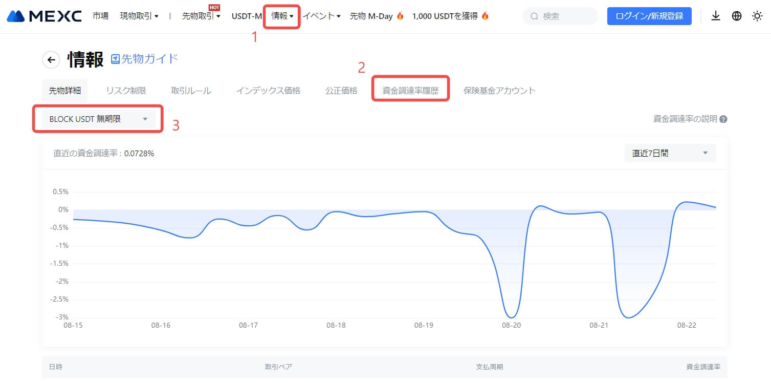 最新の資金調達率の詳細については、「情報 - 資金調達率履歴」をご参照ください。