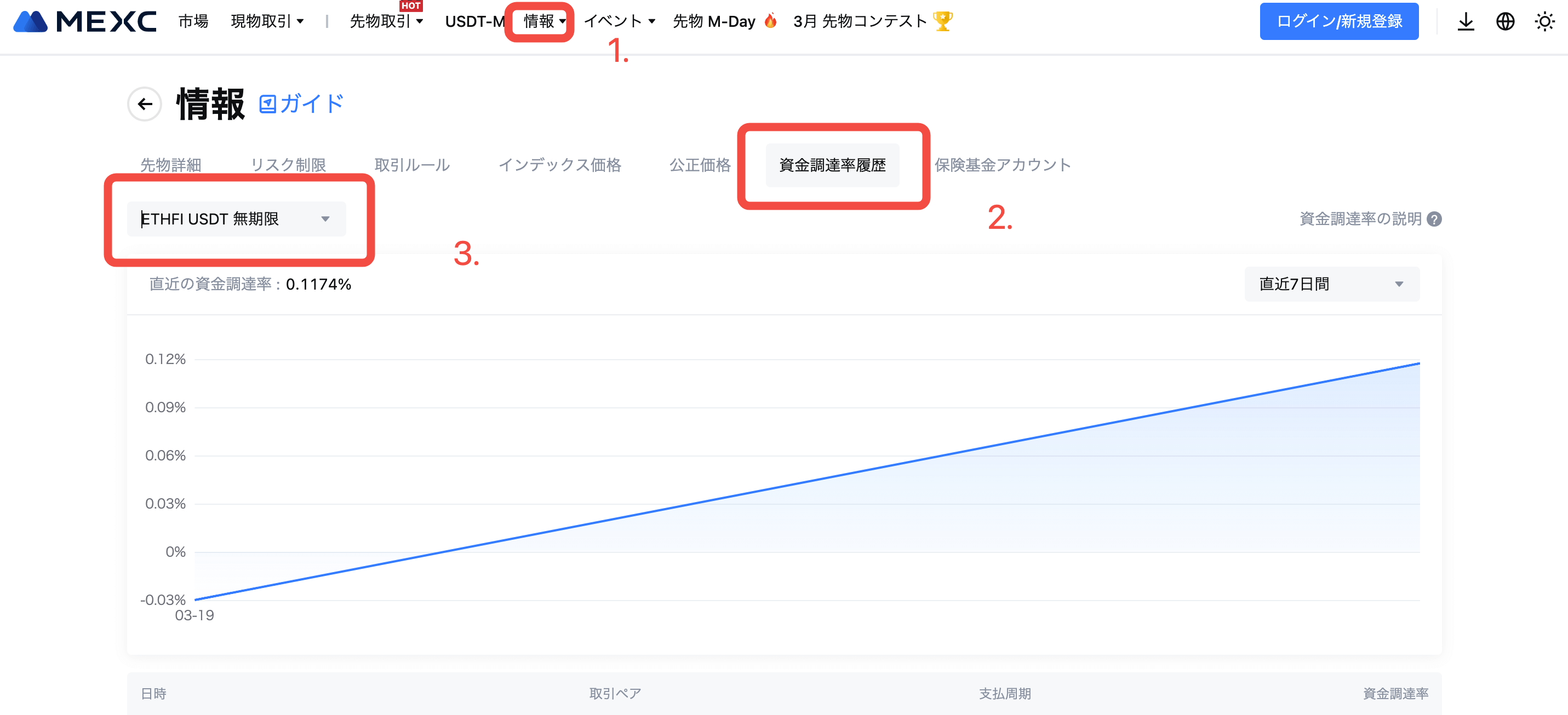 最新の資金調達率の詳細については、「情報 - 資金調達率履歴」をご参照ください。