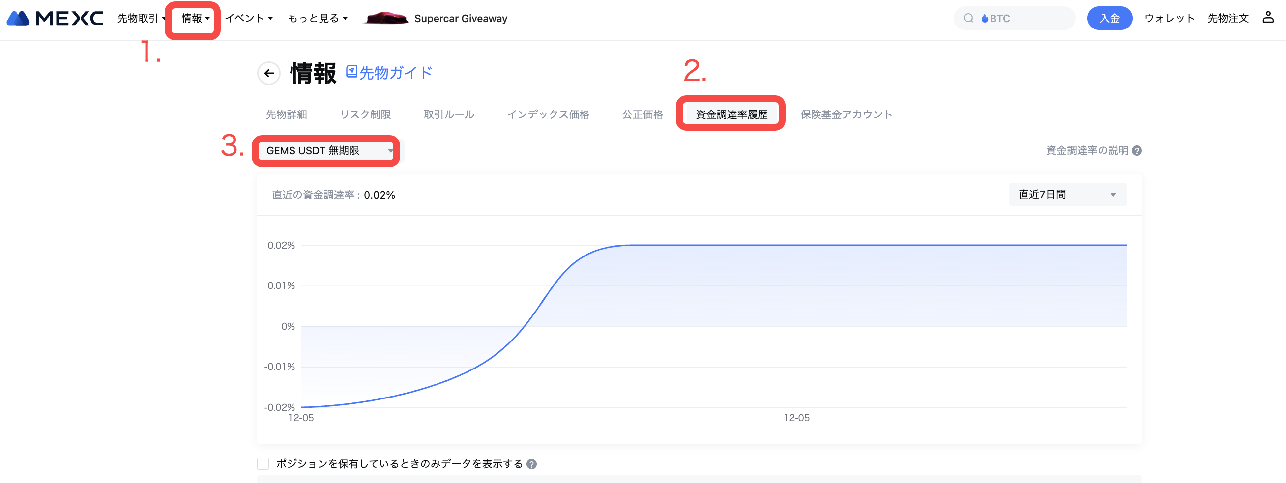 最新の資金調達率の詳細については、「情報 - 資金調達率履歴」をご参照ください。