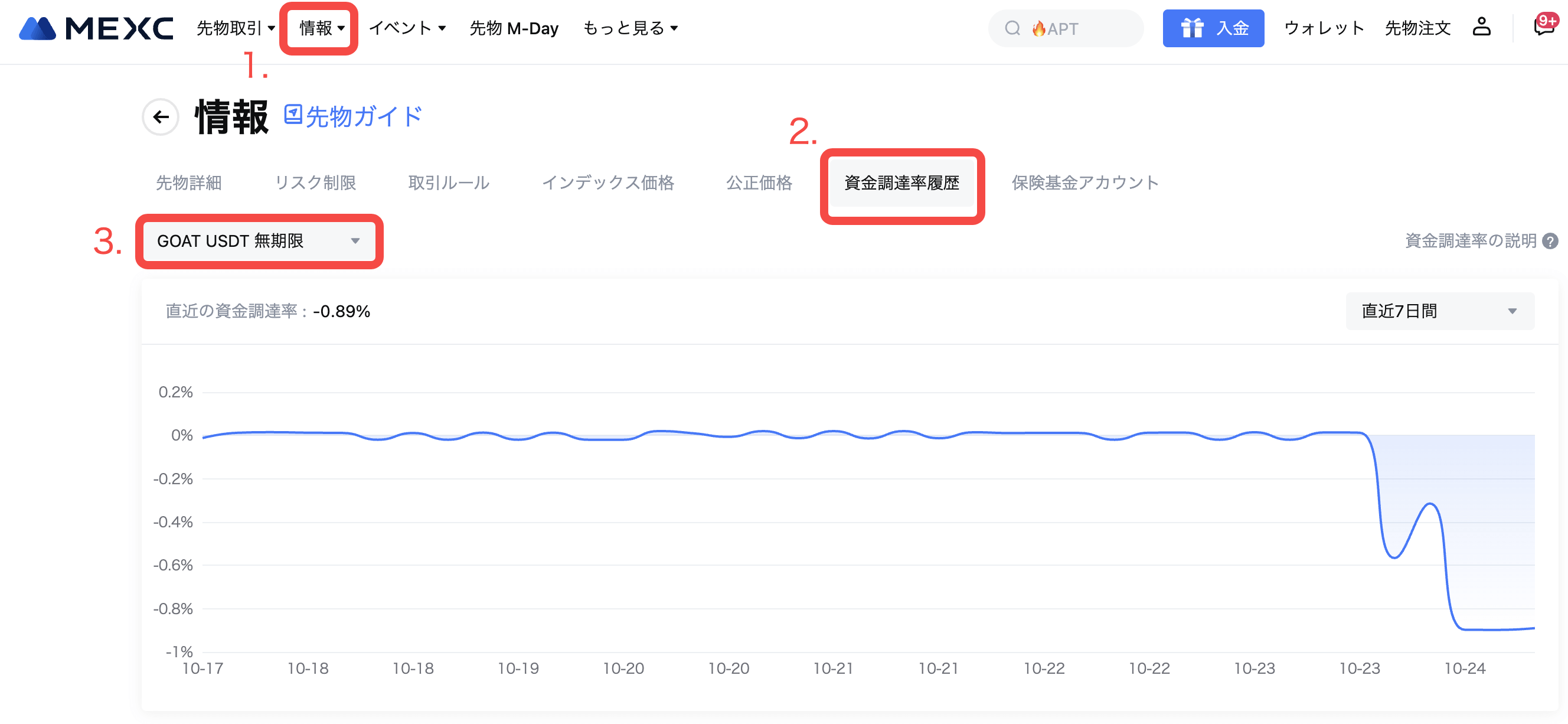最新の資金調達率の詳細については、「情報 - 資金調達率履歴」をご参照ください。