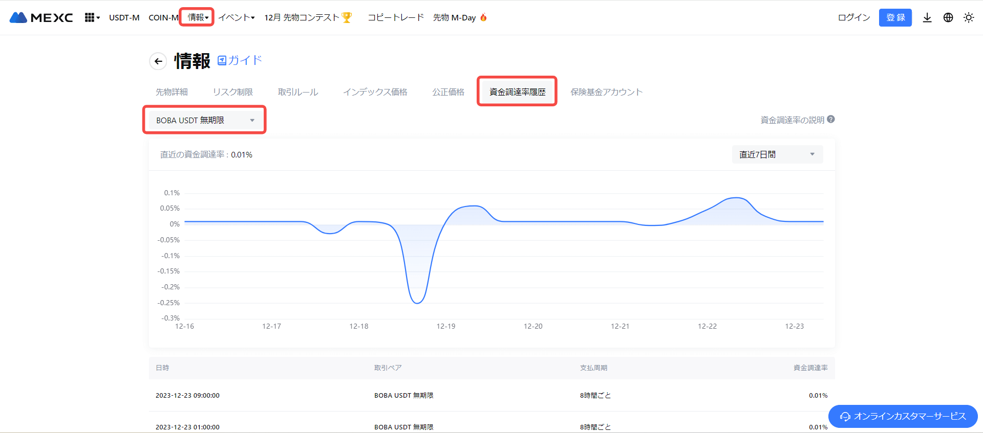 MEXC:BOBA USDT-M 先物資金調達率調整についてのお知らせ(12/23)