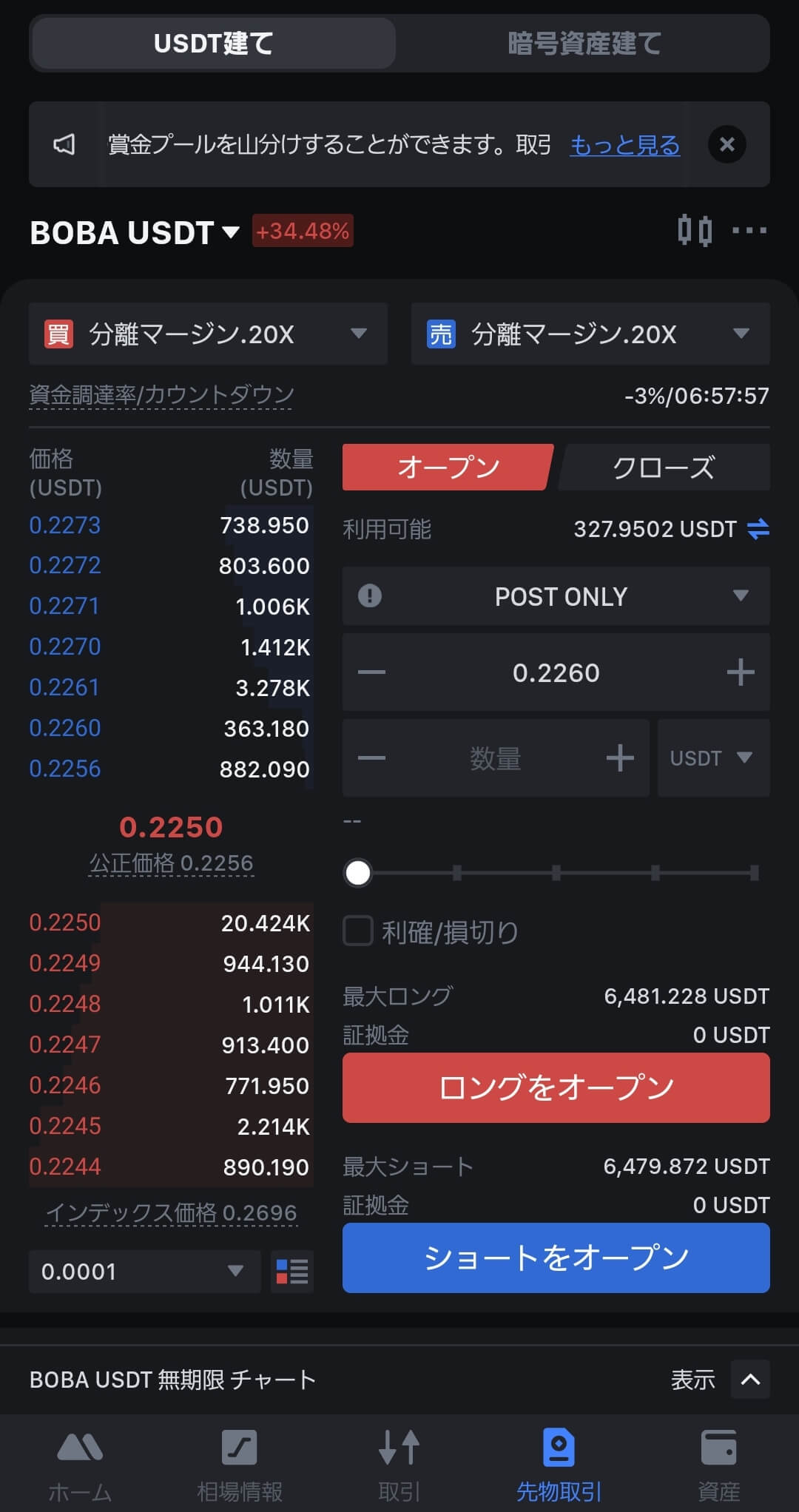 2. ユーザー様は、注文を行う前に、随時資金調達率を参照いただくことをお勧め致します。既存の注文については、強制決済を防ぐため適宜ポジションと証拠金の調整をお願い致します。