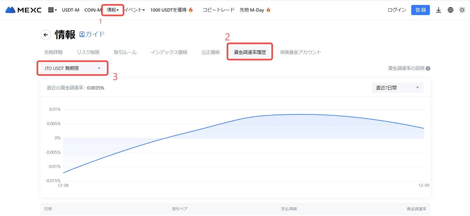 日時 (日本時間) | JTOUSDT 先物最大資金調達率 |