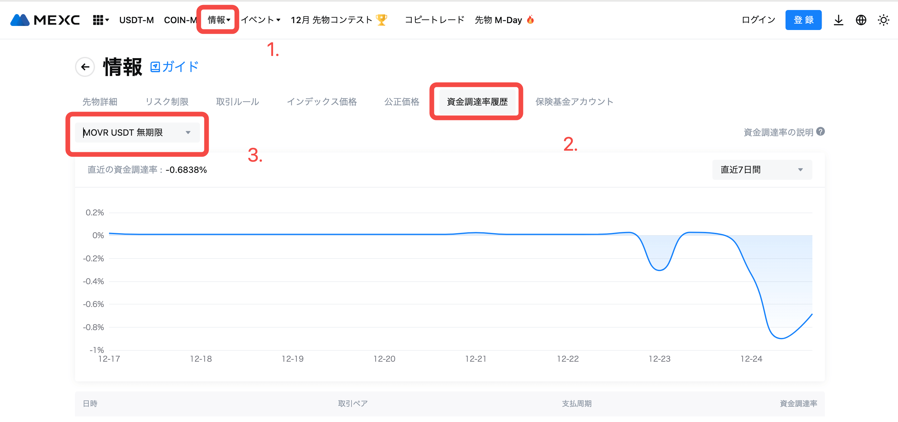 2. ユーザー様は、注文を行う前に、随時資金調達率を参照いただくことをお勧め致します。既存の注文については、強制決済を防ぐため適宜ポジションと証拠金の調整をお願い致します。