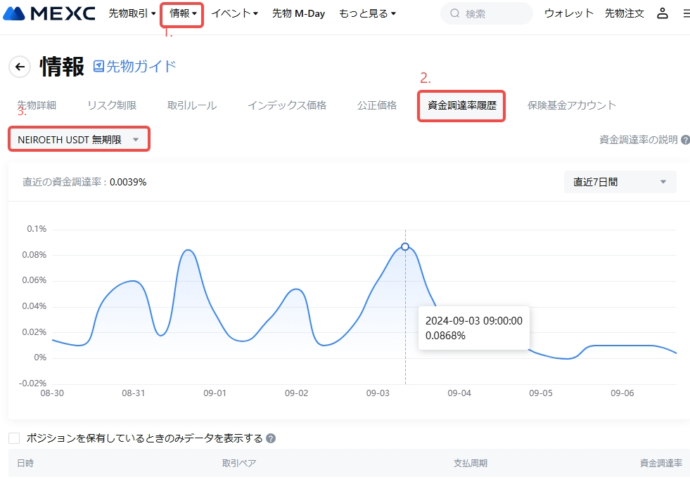 最新の資金調達率の詳細については、「情報 - 資金調達率履歴」をご参照ください。