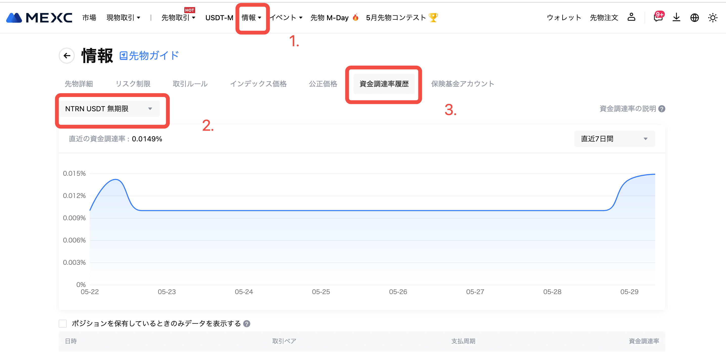 日時 (日本時間) | NTRN USDT先物最大資金調達率 |