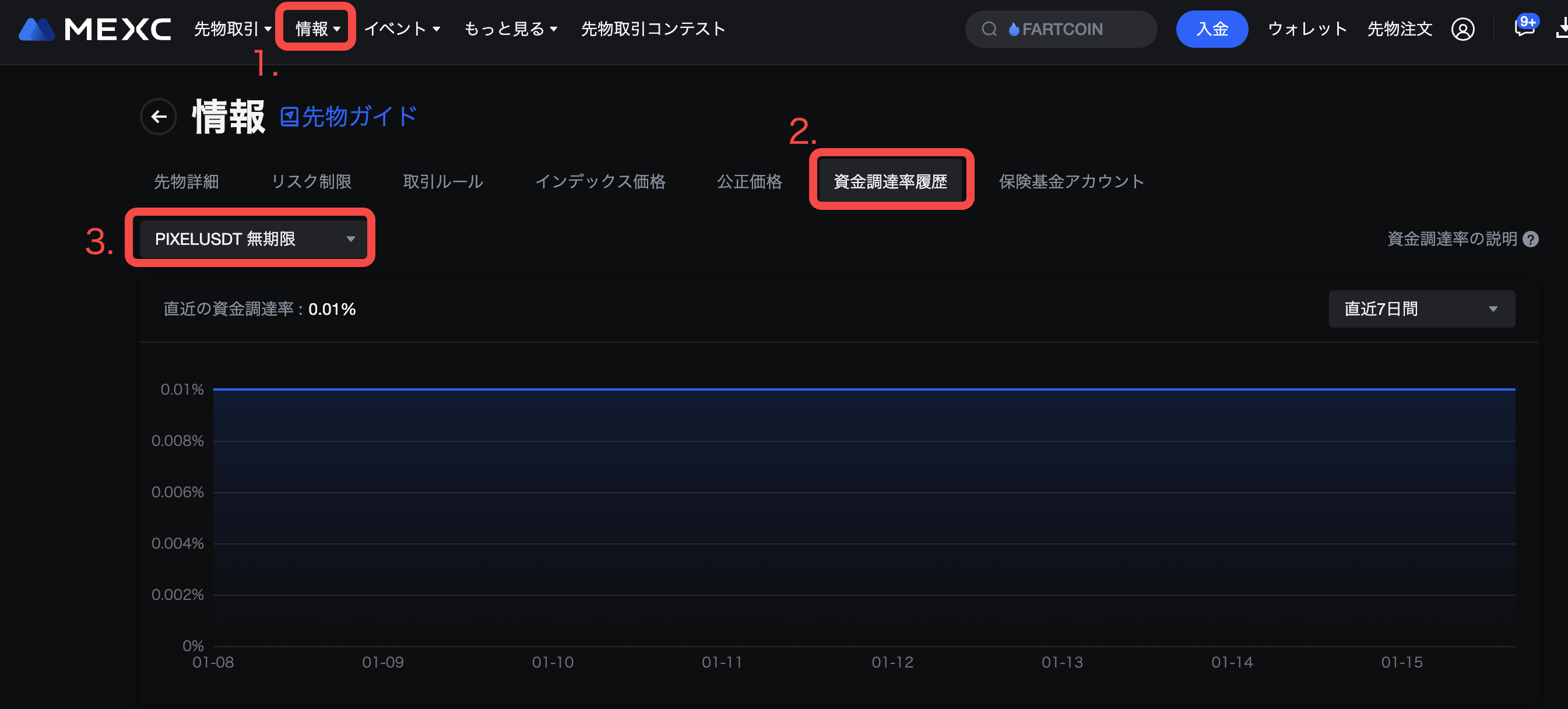 最新の資金調達率の詳細については、「情報 - 資金調達率履歴」をご参照ください。