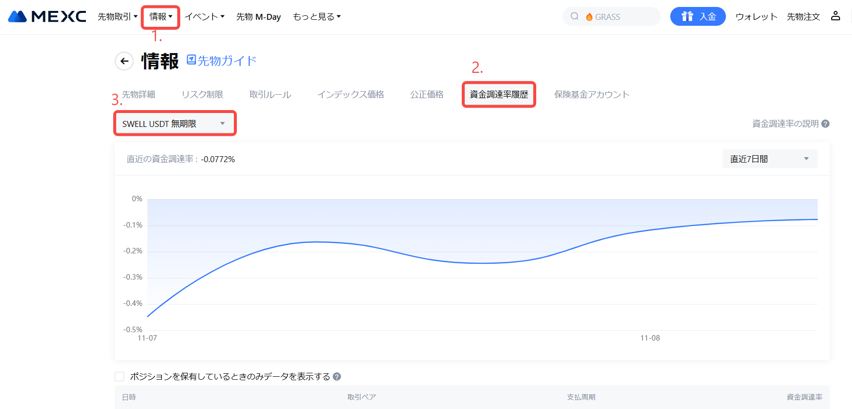 最新の資金調達率の詳細については、「情報 - 資金調達率履歴」をご参照ください。
