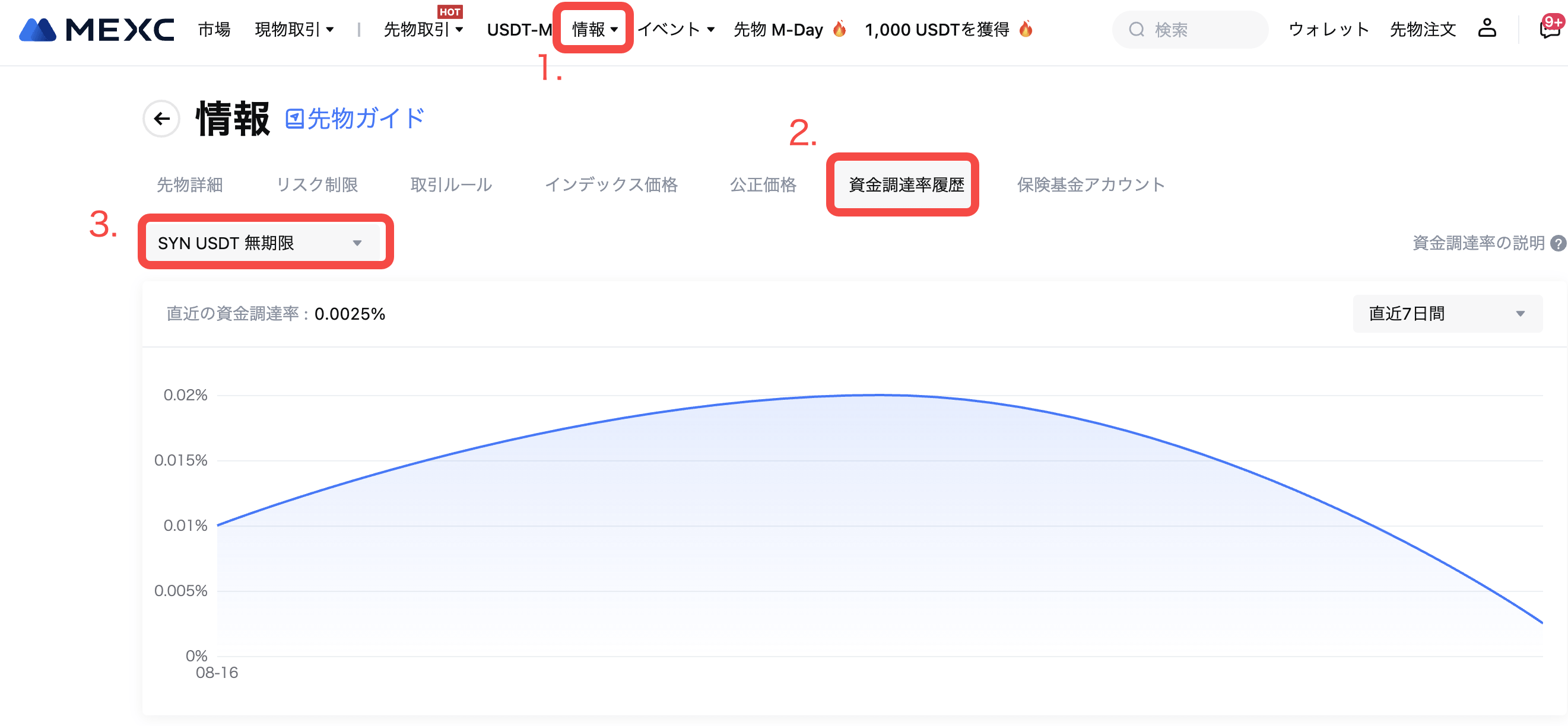 最新の資金調達率の詳細については、「情報 - 資金調達率履歴」をご参照ください。