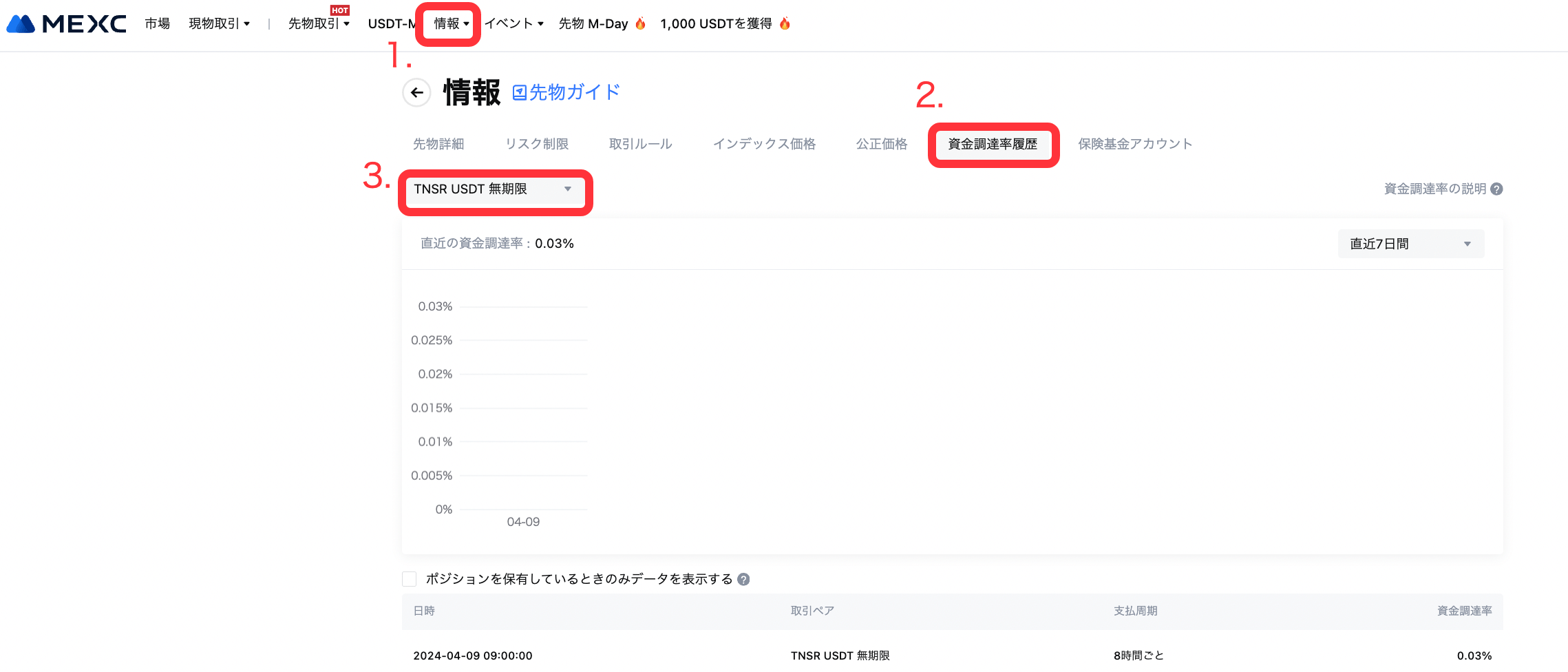 日時 (日本時間) | TNSRUSDT先物最大資金調達率 |