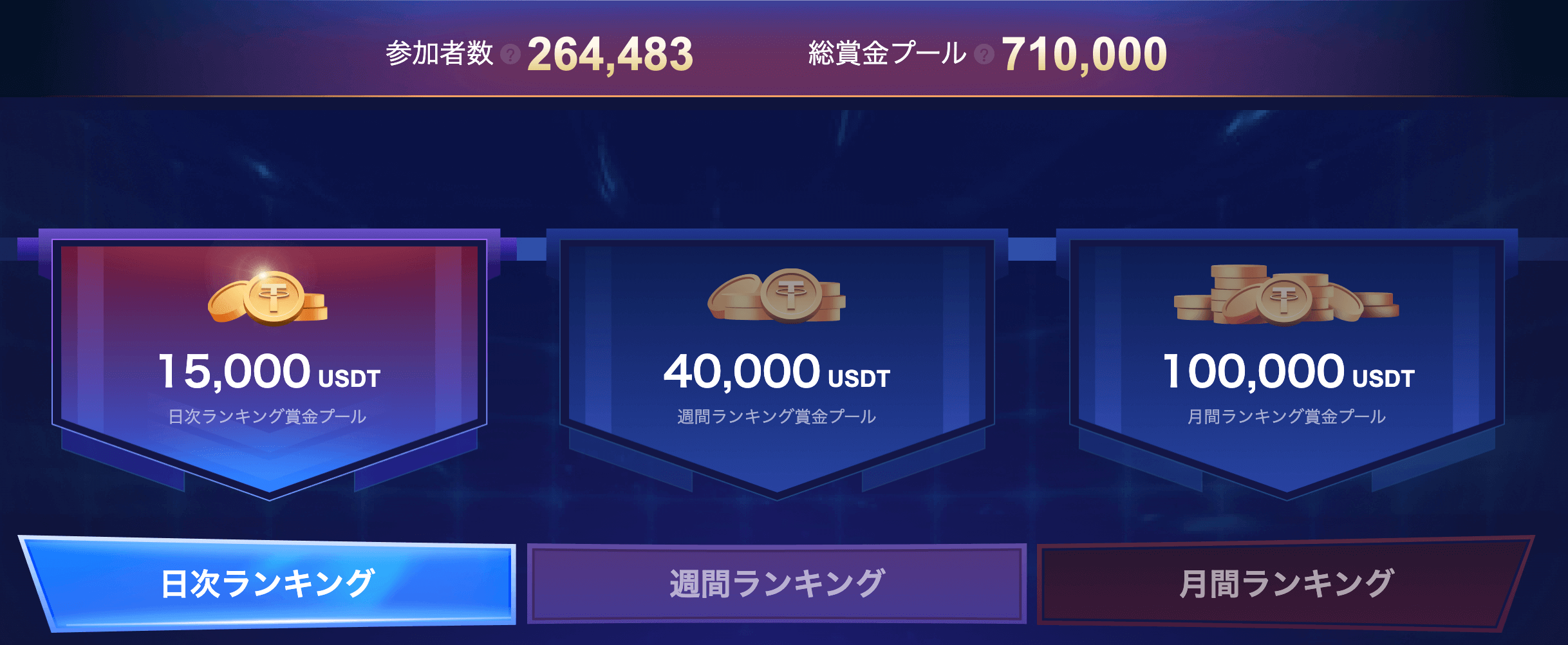 皆様が引き続き取引をお楽しみいただけるよう、MEXCはユーザー様を先物リーダーボードイベントにご招待いたします。先物リーダーボードイベントに新しい週間ランキングと月間ランキングが導入され、先物ボーナスの総賞金プールは750,000USDT相当にアップグレードされました。さらに豪華な報酬が用意されています!参加者は毎日損益額と取引報酬の両方を山分けすることができ、個別に最大20,000USDT相当の先物ボーナスを獲得するチャンスもあります!