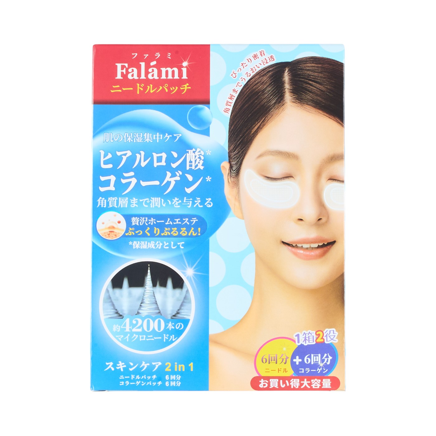 ファラー株式会社の「ニードルパッチ」は中国産のニードルパッチで、4200本の高精密針で高密着で剥がれにくいマイクロニードルパッチを謳っています。実際に使用したモニターからは、「つけたときに針がついているのかわからないほど、痛みはなかった」「はがすときもするすると剥がすことができた」など、針が多くても痛みを感じにくいテープが好評でした。また、整肌成分も3種類以上と充実していました。一方で、保湿力にはやや課題あり。貼り付けてから5時間後には、肌の水分量が低下しやすく、潤いを長時間キープするのは難しいという結果に。長時間睡眠をとる人や、エアコン環境下で強い乾燥対策を求める人には、物足りなさを感じやすいでしょう。