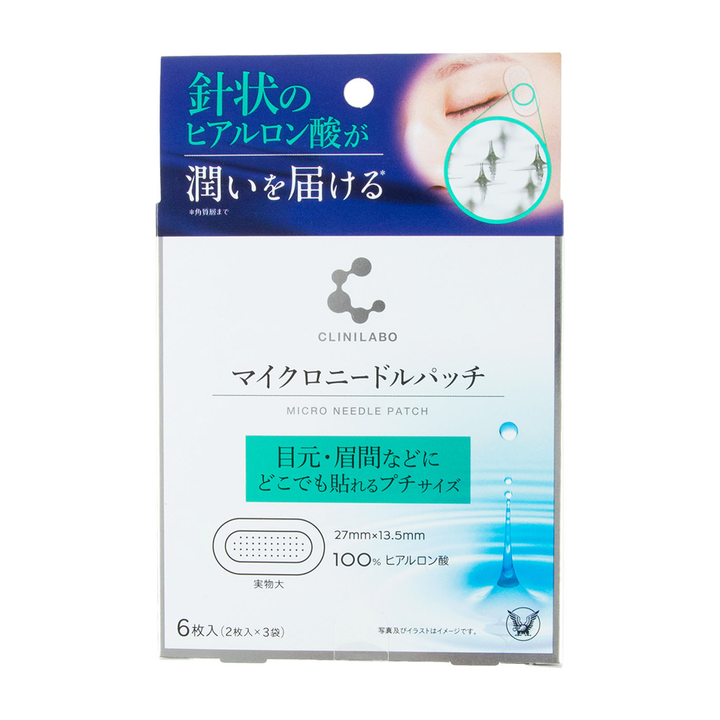 大正製薬のCLINILABO「マイクロニードルパッチ」は、肌にうるおいとハリを与えると謳っている商品です。成分構成を見ると、ヒアルロン酸Na以外の整肌成分は見当たらず、整肌成分の充実度は低評価。一方、保湿力の検証では、貼りつけてから5時間後の肌水分量が+82.22%と高評価だったので、目元の肌にうるおいを与えるのには向いているでしょう。ただし、サイズが小さめなので、ピンポイントで使いたい人向きといえます。実際に使用したモニターからは「密着させるときに痛みが気になる」「チクチク感はあるが気にならない程度」と評価が分かれました。痛みが気になる人には不向きでしょう。一方、剥がれにくさの検証では、端が少し剥がれたモニターがいたものの、モニター全員が満足以上の評価で高評価を獲得。推奨使用時間を守って貼り付け続けられると予想できるため、寝返りをよくうつ人にもおすすめです。いつものケアに加えて、ピンポイントで乾燥が気になる部分を保湿したい人に向いている商品です。