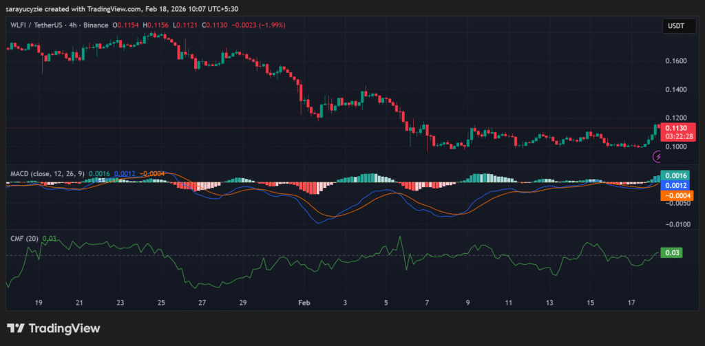 In addition, the Chaikin Money Flow (CMF) indicator is used to gauge the strength behind the price move by tracking the capital flow. It is settled at 0.03 suggests slight buying pressure in the WLFI market. As it is above zero, the capital is flowing into the asset, with mild bullish sentiment. Notably, the broader strength is weak.