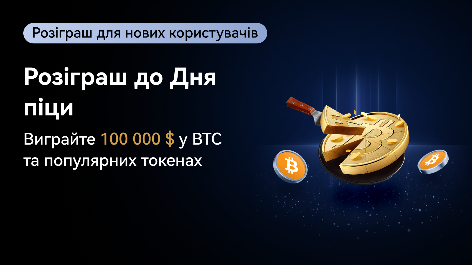 Відсвяткуйте цьогорічний День піци з криптовалютною винагородою! Здійснюте спін у розіграші до Дня піци та отримайте свою частку від понад 100 000 $ у BTC та інших популярних токенах.