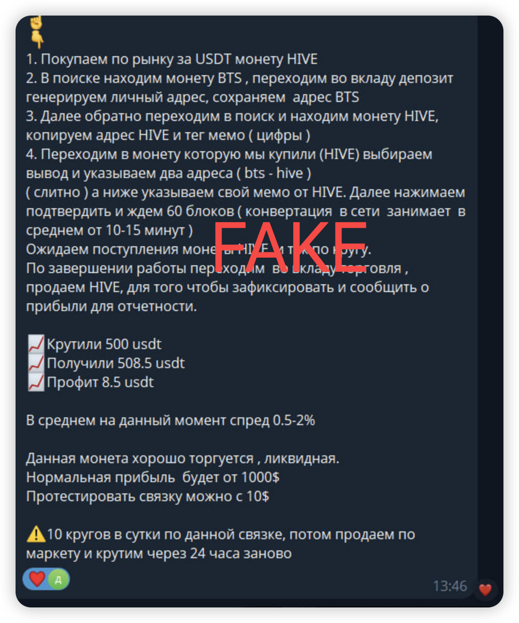 詐騙者透過社群平台添加 X(Twitter)、Telegram 等渠道拉您入群,擅自宣稱各類大型平台合作,冒充官方人員等方式獲取信任,以「搬磚套利」、「高額返利」、「帶單操作」、「存幣生息」、「跨鏈橋套利」等形式誘導,加上群友不斷收益曬單進行刺激。